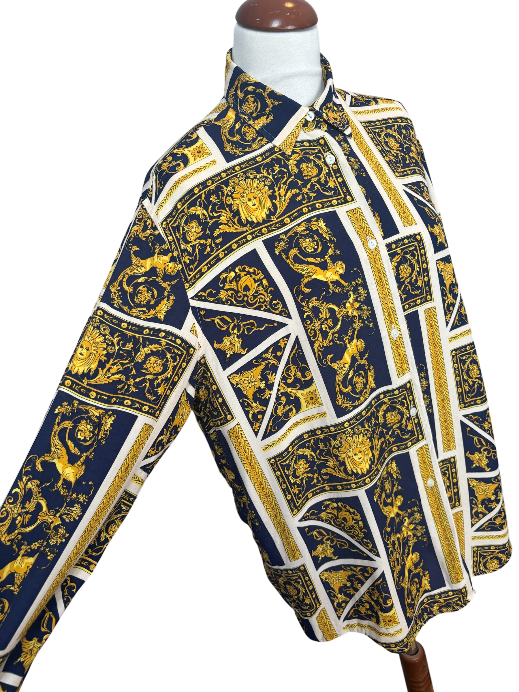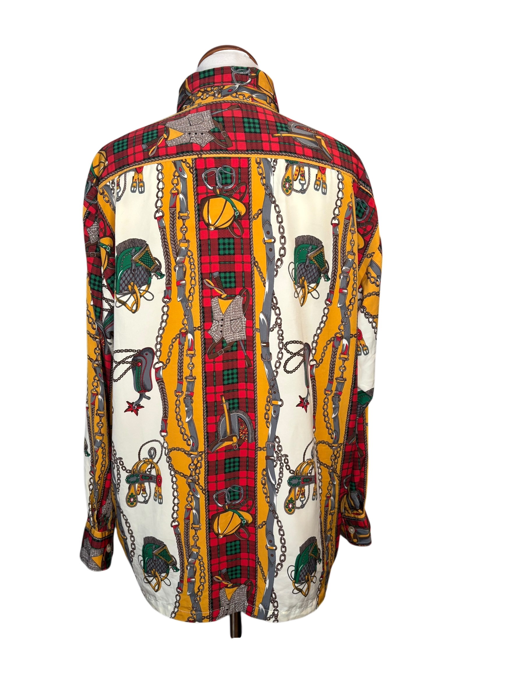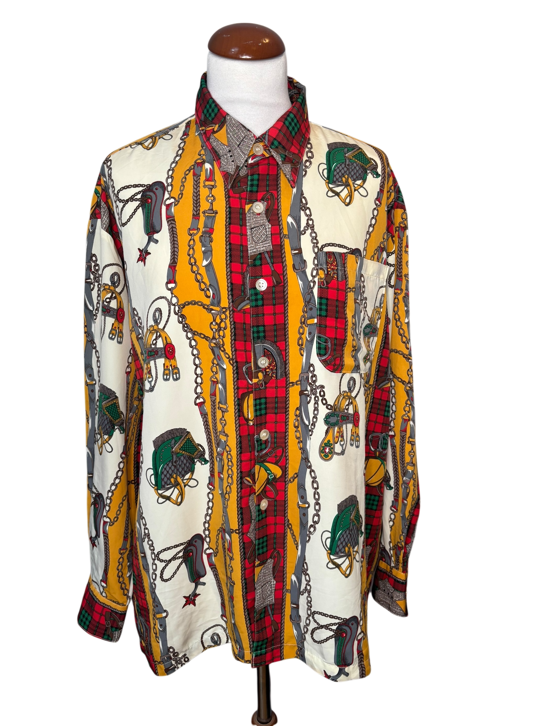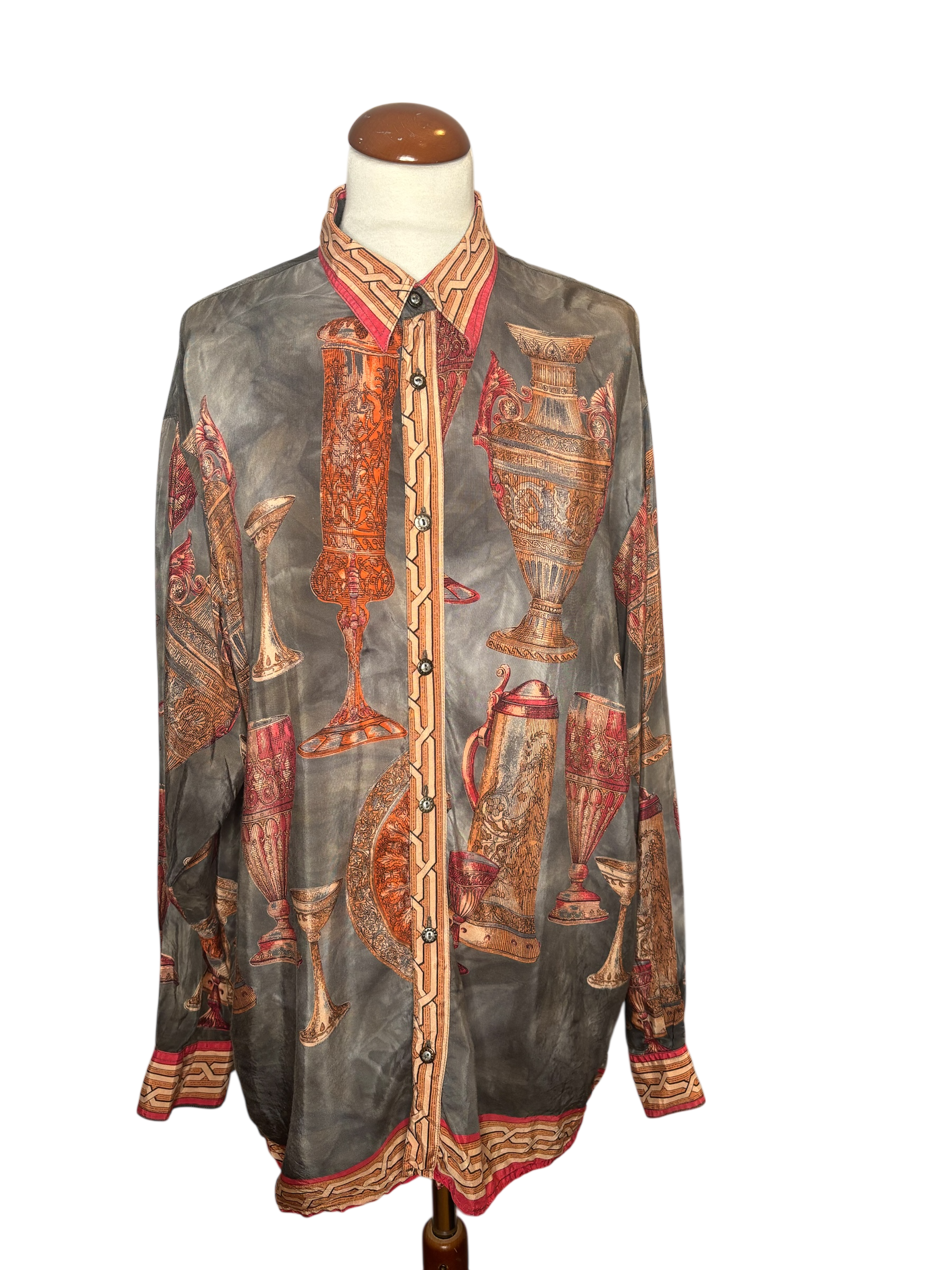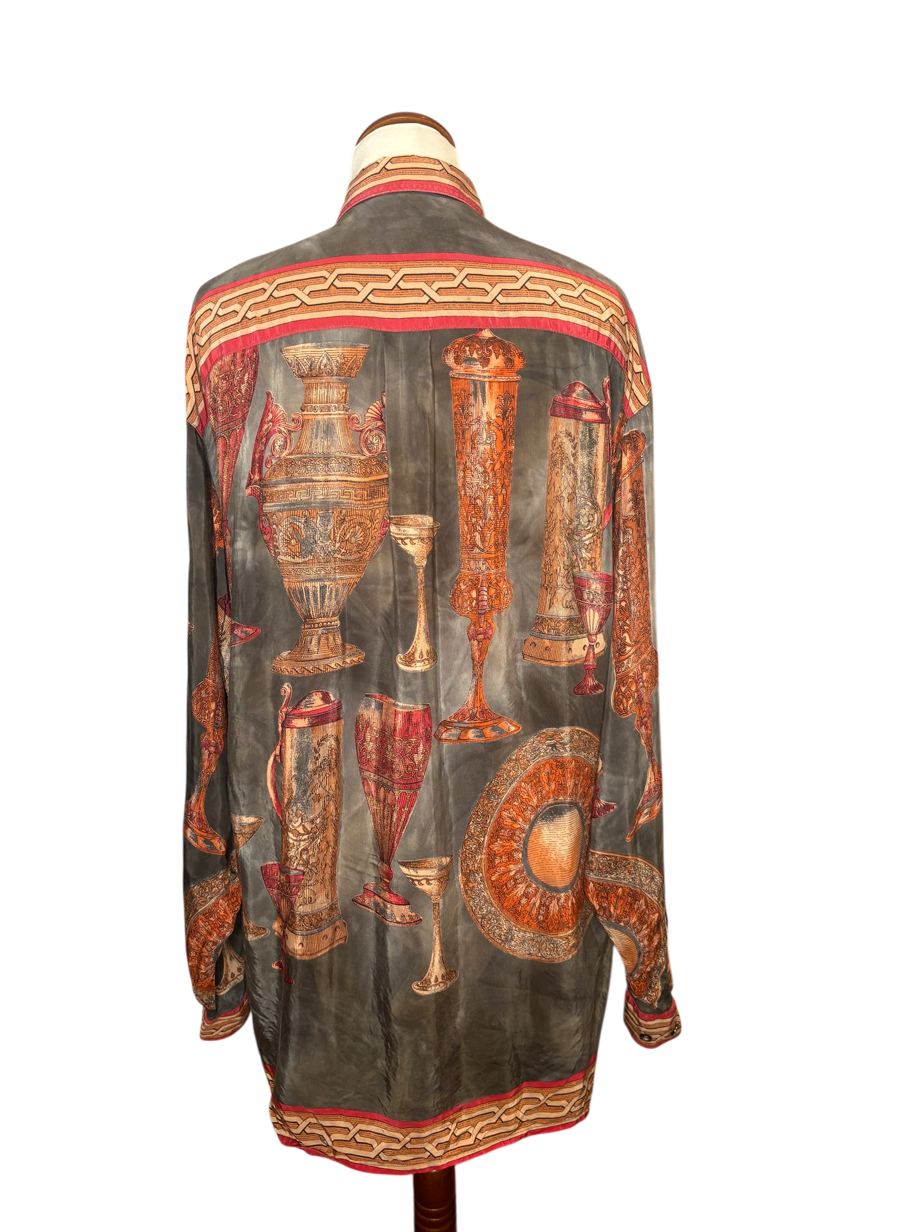 Red, Pink, Silver and Pearl Art Deco Silk Top.